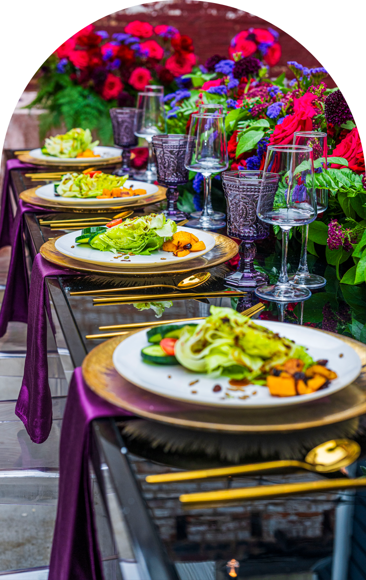 strives to make your food feel just as much a part of your celebration as the décor. At any celebration, you want your guest to leave happy and full, so why not present them with something exciting? The term "eat with your eyes" is a mantra we follow. Preparing your food takes skill and should be presented as a work of art, let us excite you before you even take a bite!